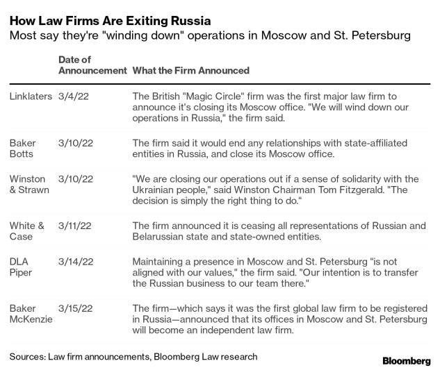 Russia Office Closures 'Incredibly Difficult' for Big Law Firms - Bloomberg Law